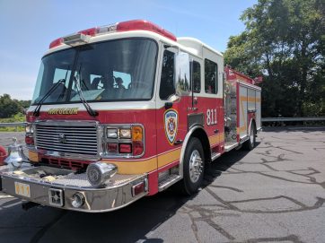 Engine 805 has a 1000 gallon water tank and a 1500 gpm pump. It is the second-out engine and is primarily used for fire and rescue calls.