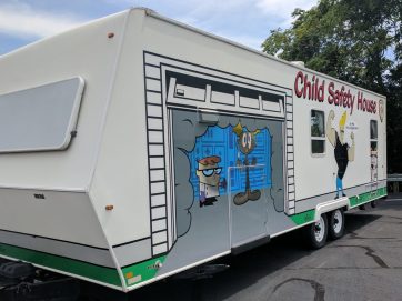 This trailer is used to educate children within the community about fire prevention, fire safety, and weather safety in their homes.