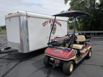 A golf cart and trailer to support EMS and fire functions at local events and festivals.