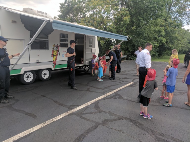 This trailer is used to teach children about fire prevention, fire safety, and weather safety in the home.